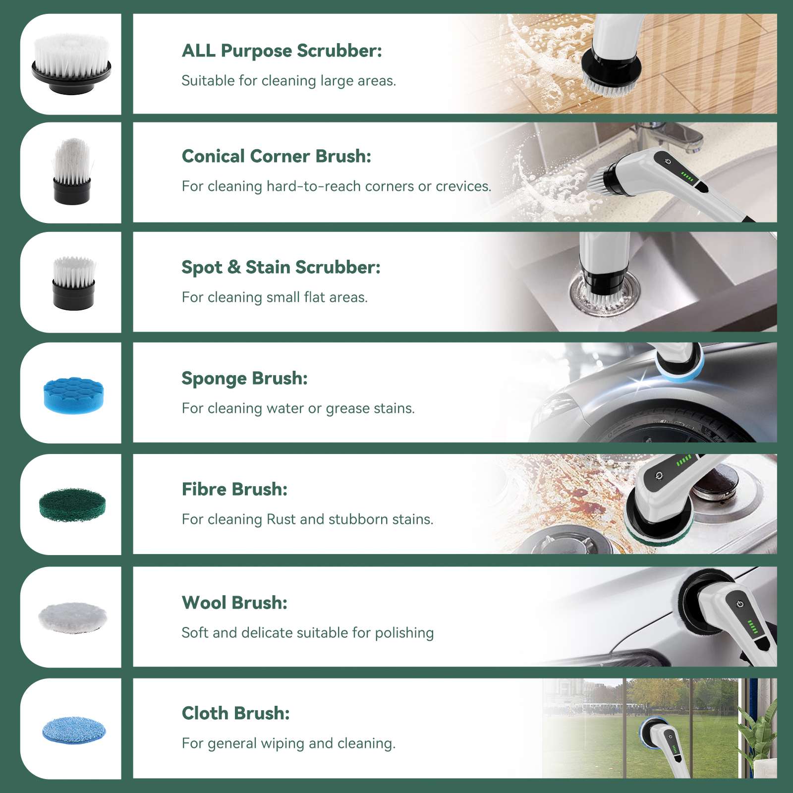 Multiple brush heads. Extension handle. Fast USB-C charging.